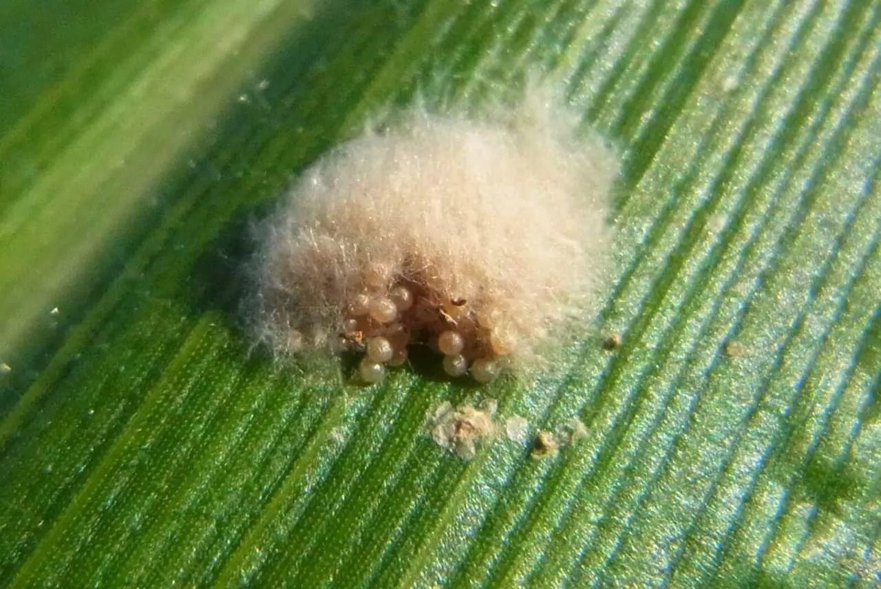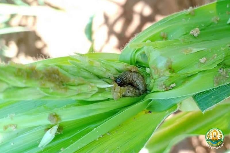 โดยเพศเมียจะวางไข่ในเวลากลางคืน การเข้าทำลายพืชเกิดขึ้นในระยะที่เป็นตัวหนอนเท่านั้น หนอนจะระบาดทำลาย ข้าวโพดตั้งแต่อายุประมาณ 7 วัน จนกระทั่งออกเป็นฝัก โดยกัดกินยอด และใบข้าวโพดแหว่ง ทำลายช่อดอกตัวผู้ กัดกินไหม ฝัก เมล็ด และจะพบตัวหนอนหลบ ซ่อนแสงอยู่ที่ยอดหรือโคนกาบใบ ข้าวโพด ความเสียหายที่เห็นได้ชัดเจน คือ ในระยะต้นอ่อนทำให้พืชตาย ระยะ ต้นแก่พืชจะไม่เจริญเติบโต ฝักลีบไม่สมบูรณ์